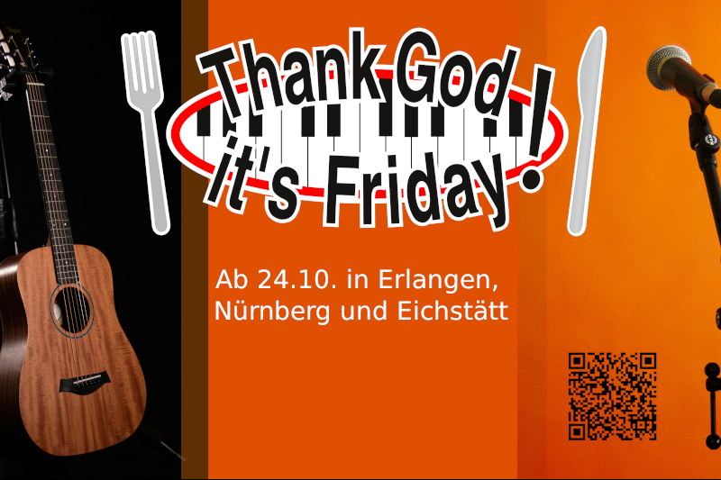 Am Freitag geht es wieder los mit unserer Mittagsmusikreihe Thank God it's Friday - dieses Semester zusätzlich in der Cafeteria der Südmensa Erlangen! Freuen Sie sich auf tolle und vielfältige Klänge während des Mittagessens.